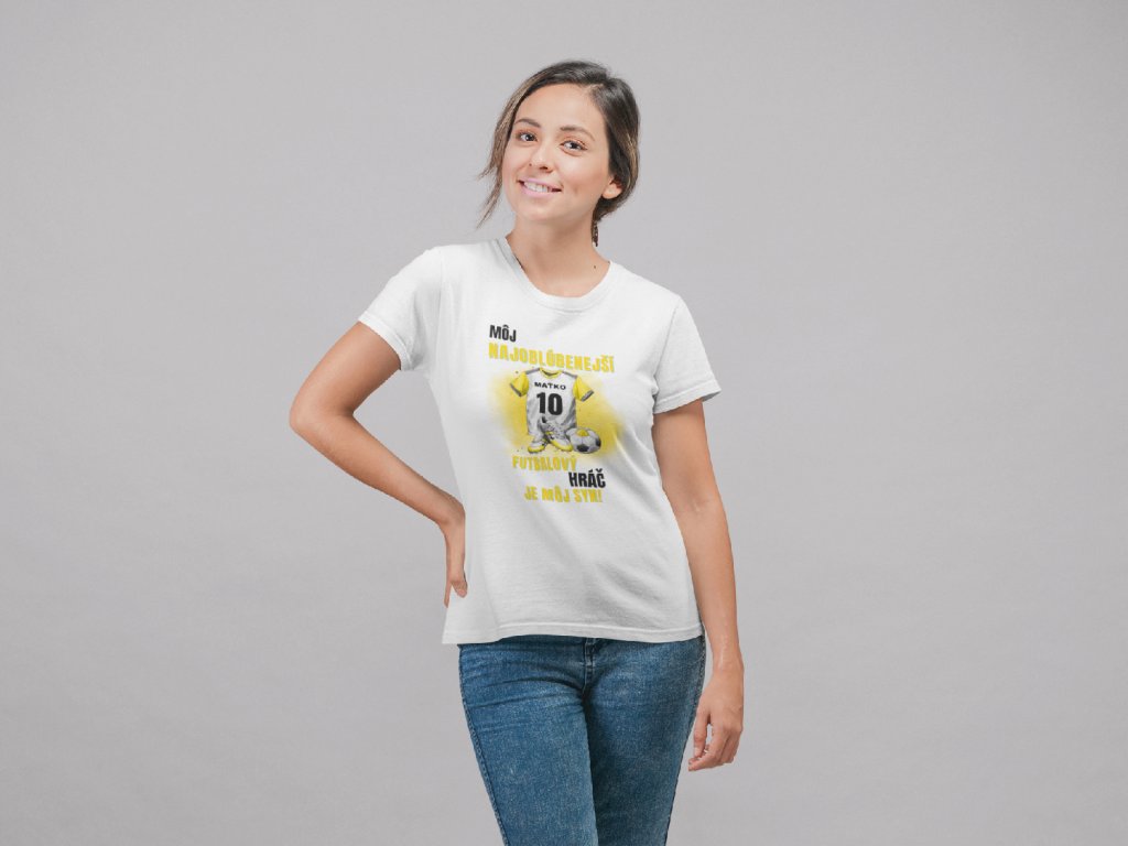 Dámske futbalové tričko s krátkym rukávom - môj najobľúbenejší futbalový hráč žlté